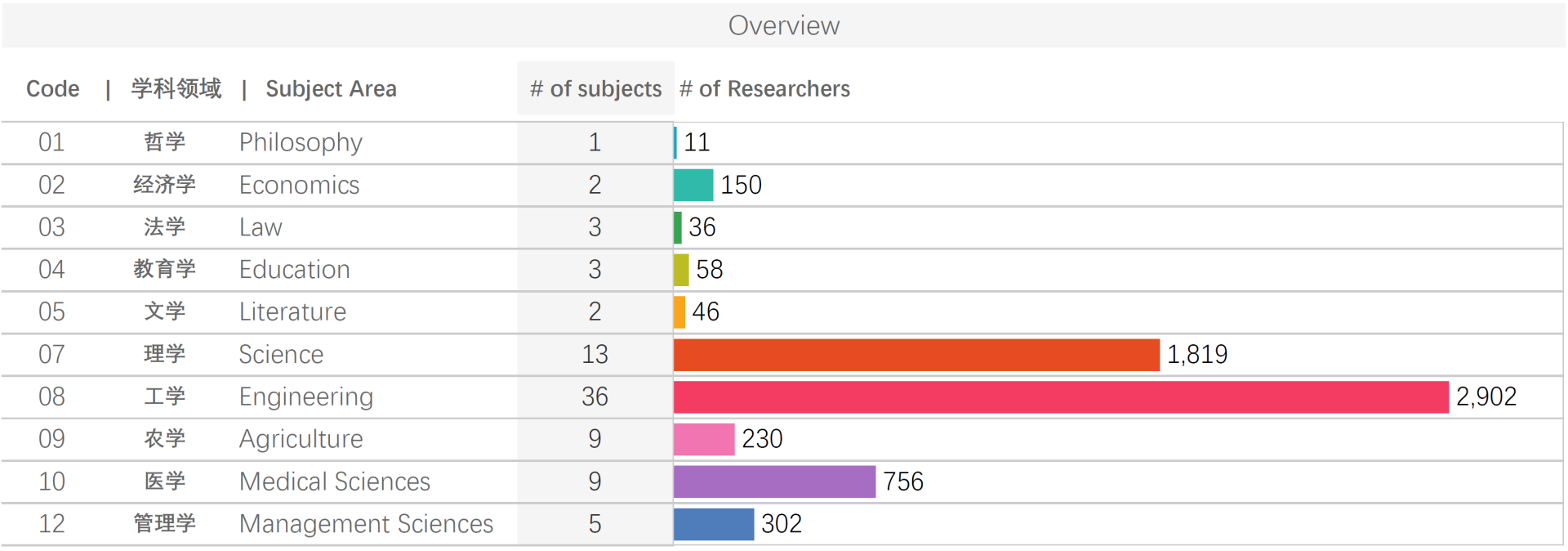 本次榜单采用了进一步优化和更新的爱思唯尔教育部一级学科分类映射(覆盖111个学科),使中国学者的学科归属与表现数据更直观、系统地得以展现,例如细分出工学36个方向、理学13个方向、医学与农学各9个方向等。此举也让一些具有中国特色的优势学科中学者脱颖而出,例如: